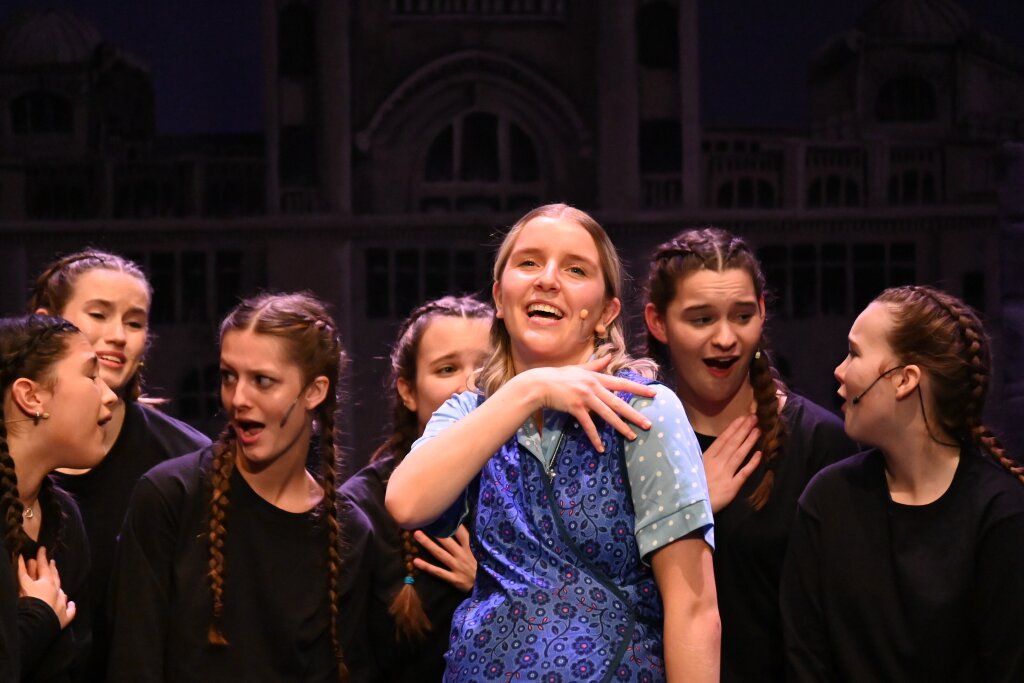 At my previous school (Les Quennevais School), I had played major roles such as Sarah Brown in “Guys and Dolls”, a character whose storyline focused on romance. In contrast, Mrs Johnstone was a deeply emotional role that required me to tap into a new level of vulnerability and helped me develop a more nuanced approach to acting. Unlike past productions the cast to me was all new, so creating connections and bonding with my peers on stage was crucial to the success of our performance. Overall, leading the cast was an unforgettable experience as it allowed me to take on new responsibilities, grow as an actor, make friends for life, and find my place in my new school