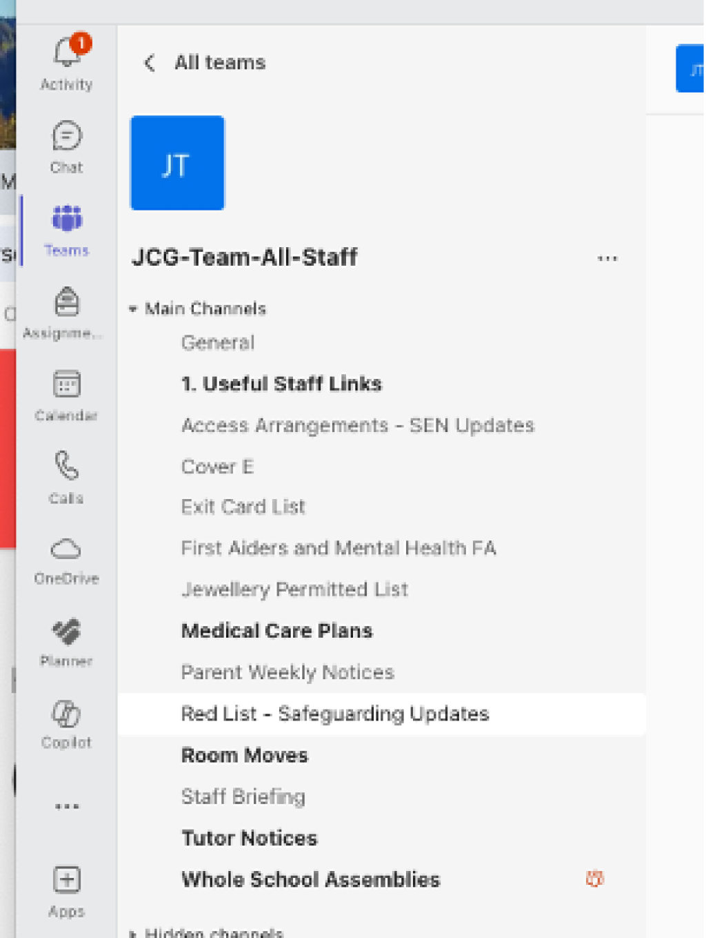 The list can be accessed, by College staff, through the Safeguarding Updates channel on the JCG-All-Staff Team