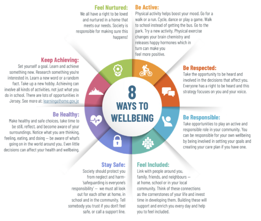 Tips for Wellbeing from the Children and Young People’s Emotional Wellbeing and Mental Health Strategy 2022-2025 (Government of Jersey)