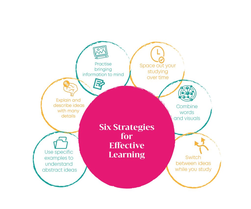 There is a large amount of recent research into how we learn best. At JCG, we believe that the best of this research should inform what we do, and for that reason you will be coached to apply the six strategies in the diagram so that you learn most effectively.